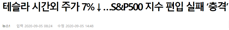테슬라 주식의 S&P 500 지수에 편입이 실패해버렸습니다.