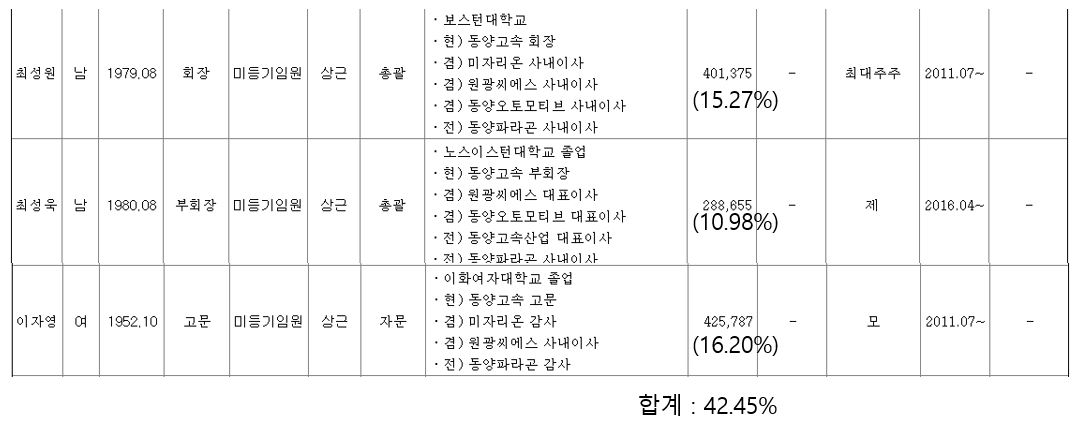 현재는 40%대로 동양고속을 지배하고 있지만, 2019년까지만 해도 50%이상 지분율을 갖고 있었습니다.