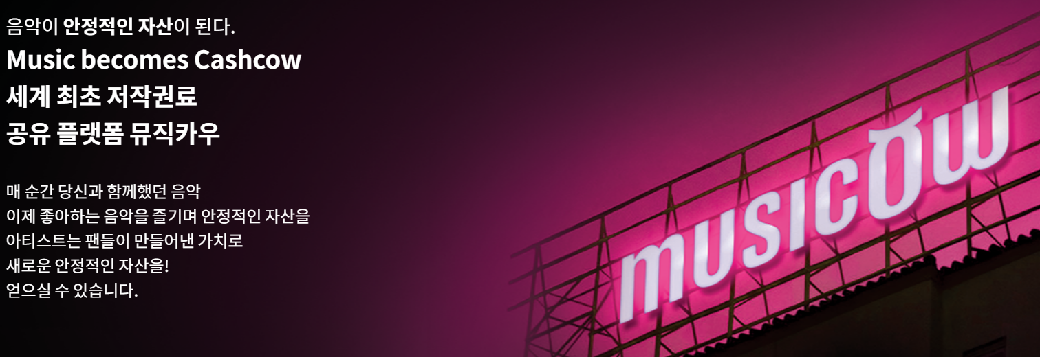 이런 음악 저작권을 개인들에게 공개하고, 개인간에 거래할 수 있도록 만든 온라인 플랫폼이 이 '뮤직카우'입니다.