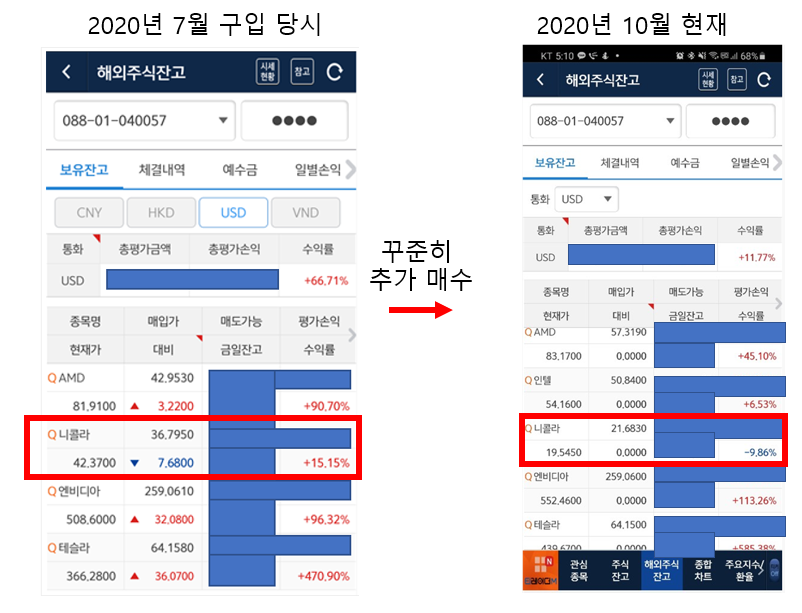 니콜라 주식의 평단가가 감소한 것을 보시면제가 추가 매수를 꾸준히 했다는 것을 알 수 있지요?