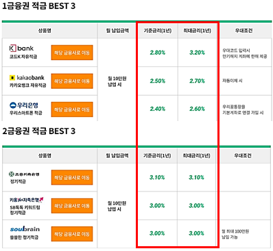 때문에 위의 그림에서 나오는 것처럼 하나은행과 같은 대기업에서 보장하는(로우리스크) 3~5퍼센트 대 적금(기존의 예금보다 상대적으로 하이리턴)이 뜨자마자 폭주하는 상황이 발생하고 있습니다.