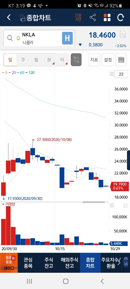 제가 지금 투자하고 있는 니콜라의 주가 그래프를 가지고 설명해볼까요?