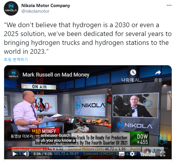 MAD money라고 하는 TV show에 니콜라의 CEO인 마크 러셀이 인터뷰를 하였습니다.