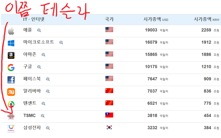 이 수치가 얼마나 대단한 것이냐면, 거의 전세계 탑 티어 자동차 회사들을 모두 다 팔아야 테슬라 하나 살까말까 한 수준이라고 하면 와 닿으시려나요.
