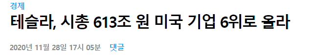 | 테슬라 S&P 500 편입 드디어 성공 (0) | 2020.11.17 |