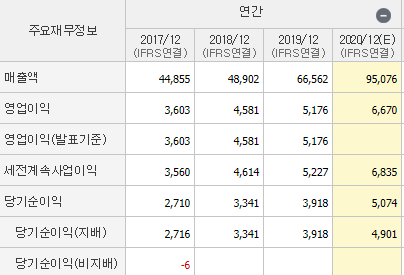 공매도 이슈가 있었던 2018년에 주가는 빠졌지만, 실제 실적은 2017년보다 더 잘 나왔네요.