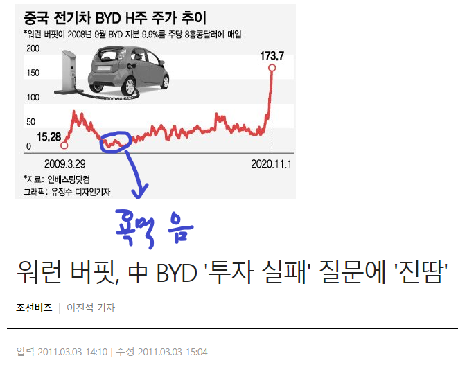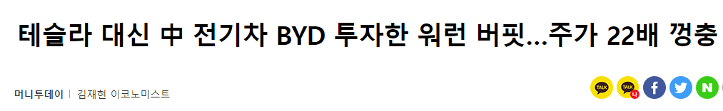 투자의 전설 워런 버핏은 중국 전기차, 배터리 회사인 BYD를 2008년에 취득하였습니다.(삼성전자도 BYD에 5천억 투자함)