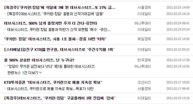아무리 기대감에 흘러가는 주식 시장이라고 하지만, 아무리 이해를 하려고 해도 이해가 안 됩니다. 주주로서가 아니라 게이머로서 이해가 안갑니다. 데브시스터즈가 연속 상한가라니요... 이해