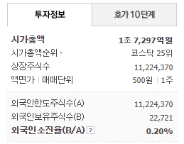 외인 지분율은 0.2%로 굉장히 적고, 최대주주와 의미있는 주주의 지분율은 37%정도에 나머지는 개인들의 지분입니다.