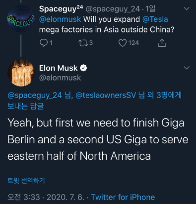 기존에 작업중인 공장이 완공되면, 이라는 단서가 붙었지만 중국 상하이 공장 이외에 아시아 지역에 테슬라의 기가 팩토리를 설치할 계획이 있다고합니다.