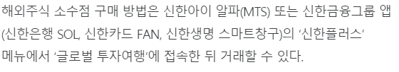 이 소수점거래 서비스를 최근에 최초로 신한금융투자에서 제공하기 시작하였고,