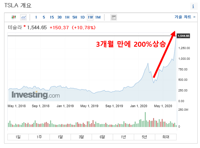1주에 1,500달러 1790달러를 찍고 온 테슬라 주식.(ㅎㄷㄷ)
