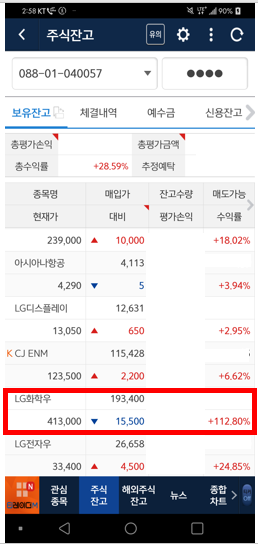 제 메인주식 중 엘지화학우 주식(엘지화학 우선주)의 주가가 지붕을 뚫어버렸습니다.